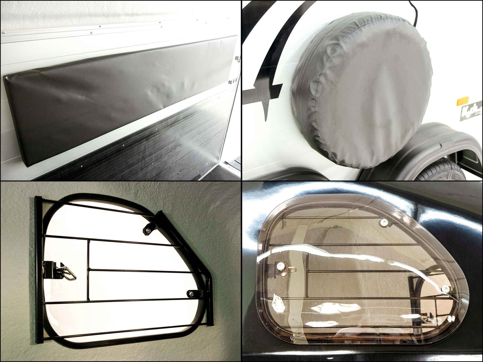 - Porta traseira em alumínio, giratória e articulável com revestimento de borracha