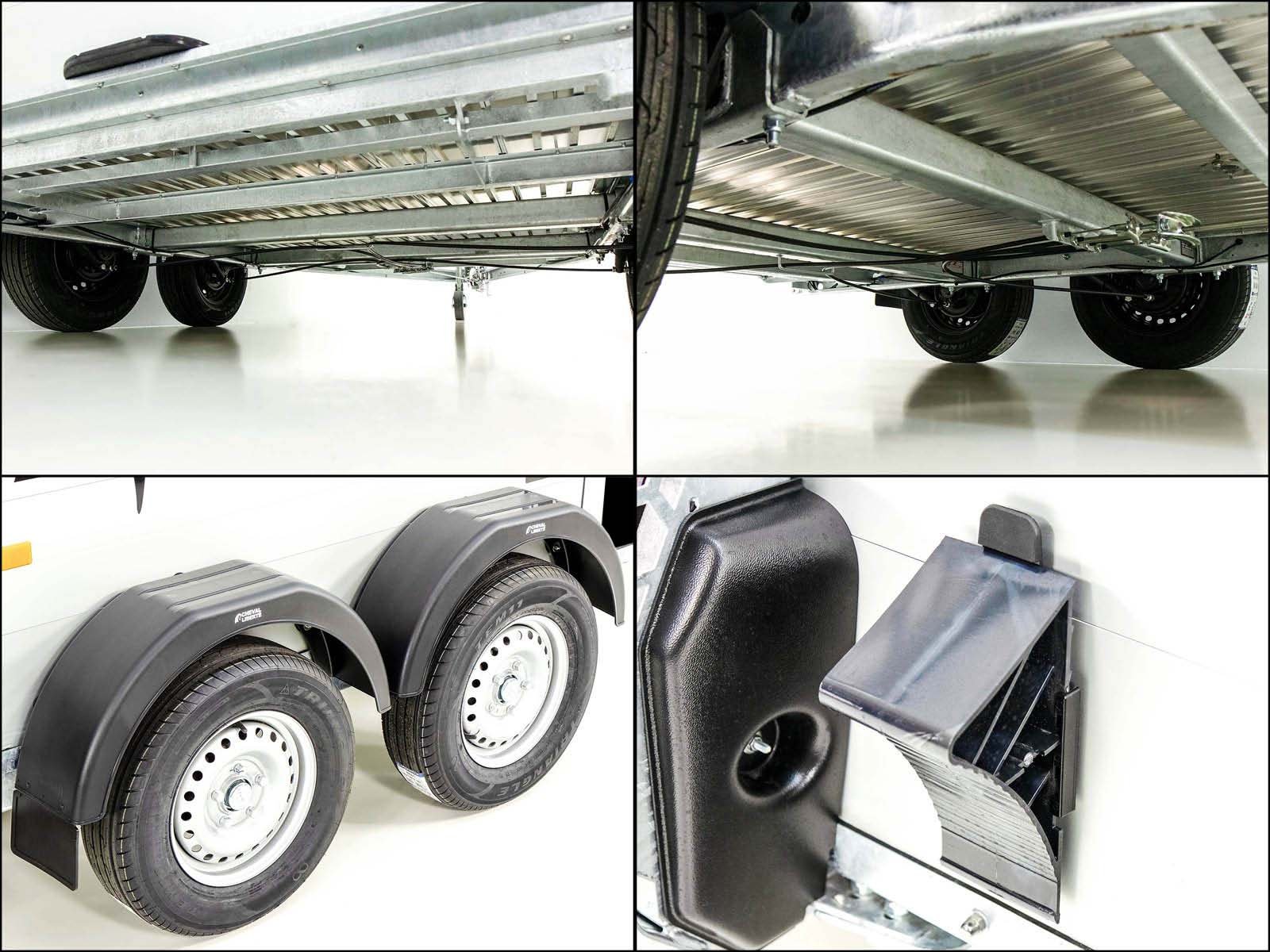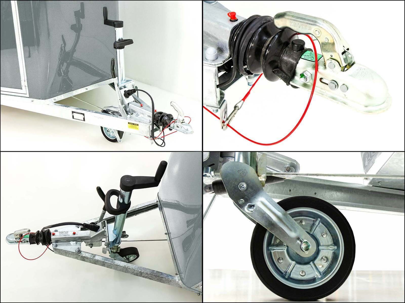 - Eixo com mola de borracha Knott, barra de tração em V, roda de suporte automática para serviços pesados