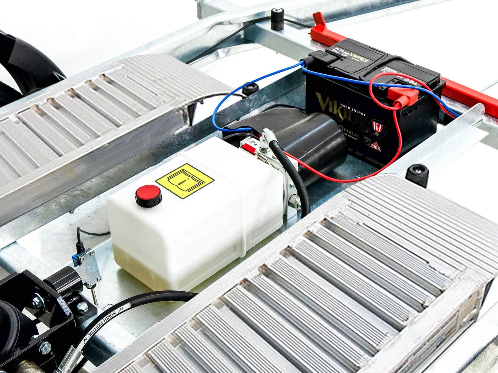 Debon basculante de três vias 180x306cm 2.6t | Bomba eletrônica | Rampas | Suportes