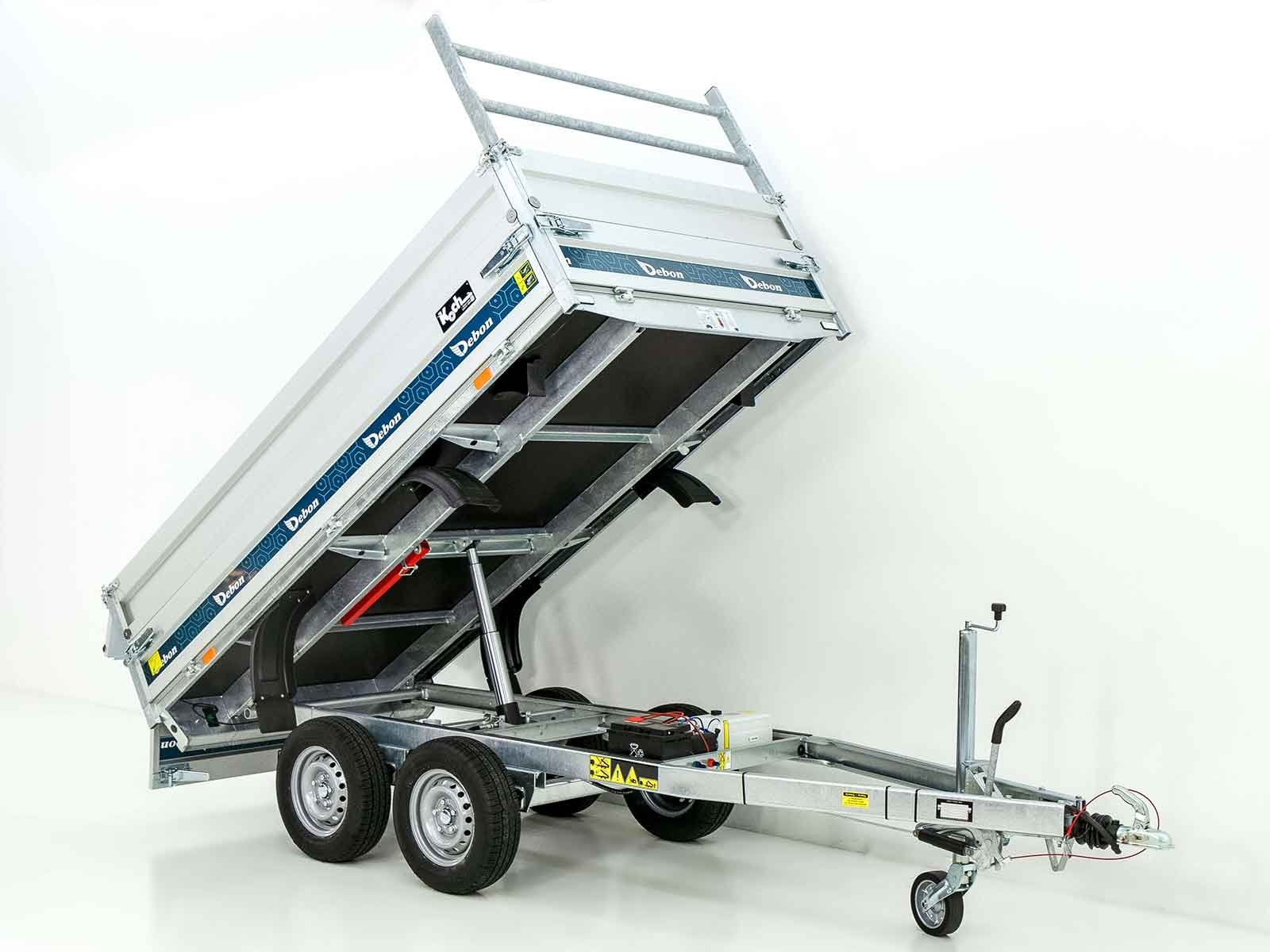 Um basculante traseiro maior da Debon com dois eixos, fixação na parede lateral de alumínio e maior volume de carga. Perfeitamente adequado para transporte médio a pesado.
