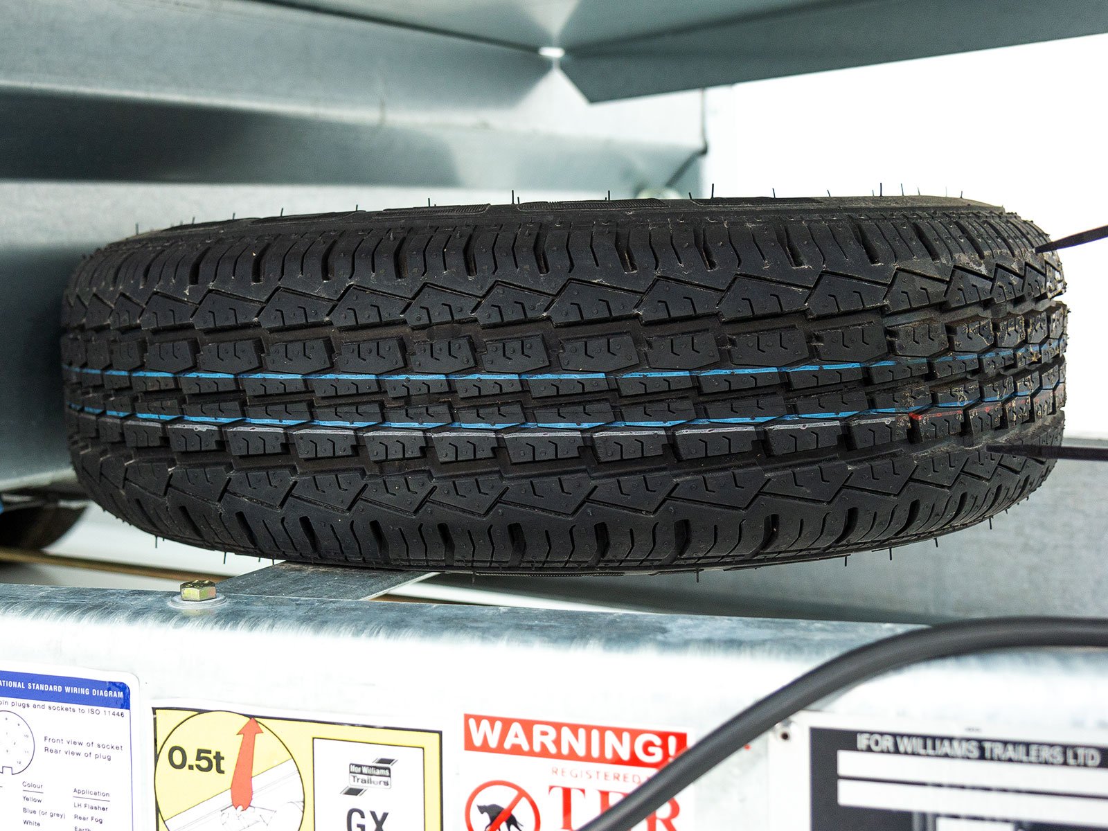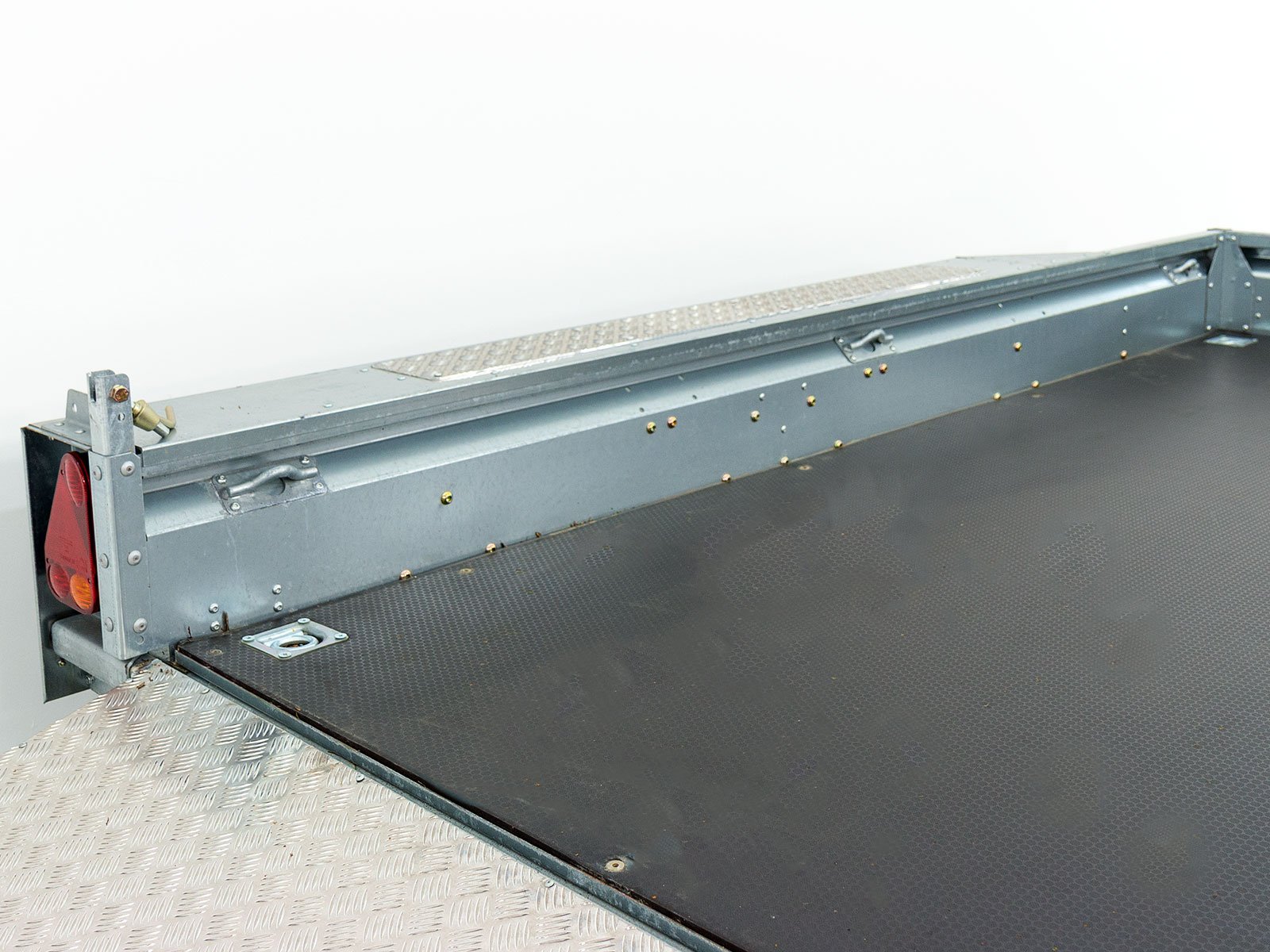 • Chassis: Molas de lâmina, barra de tração em V com acoplamento esférico, roda de suporte para serviço pesado