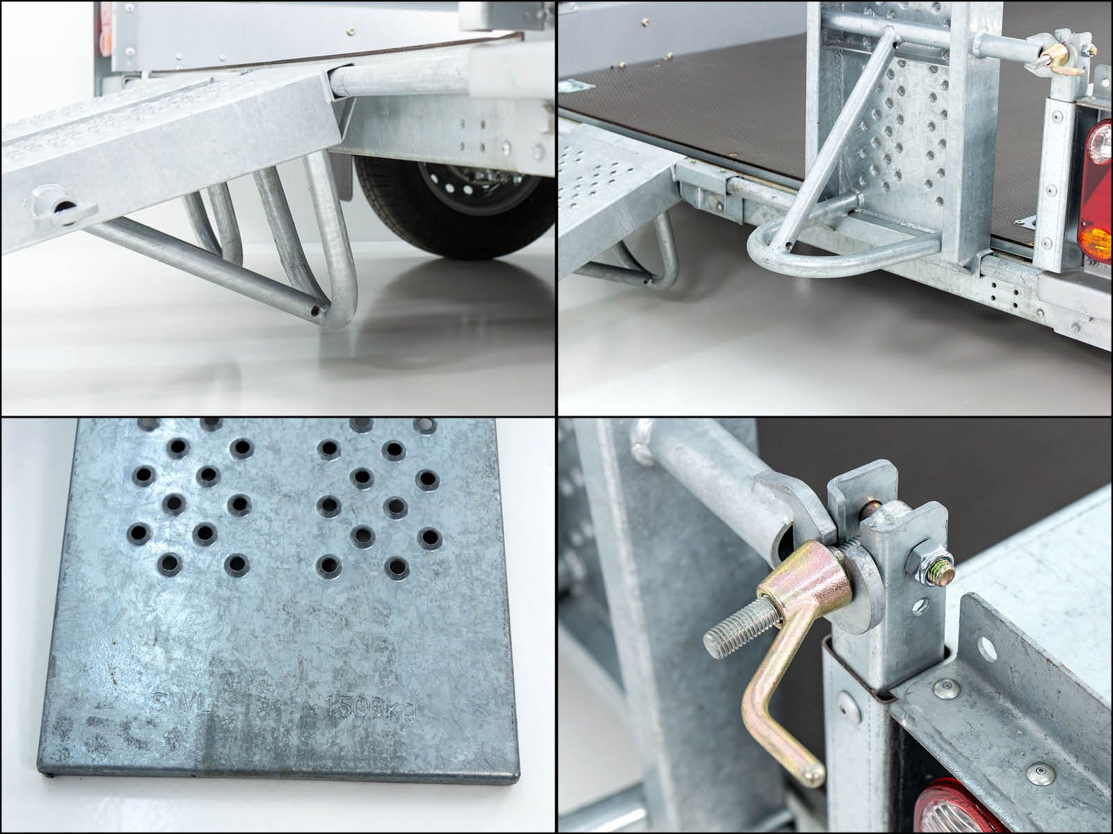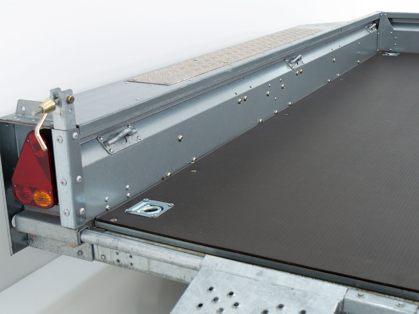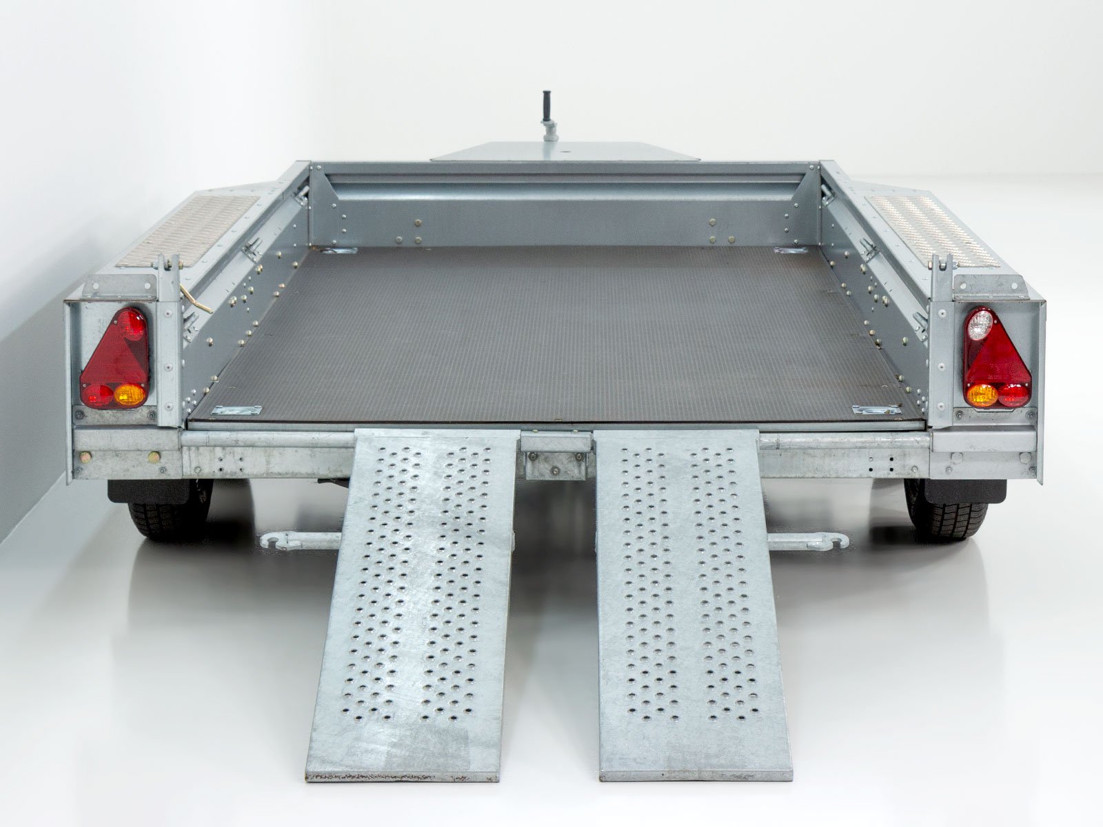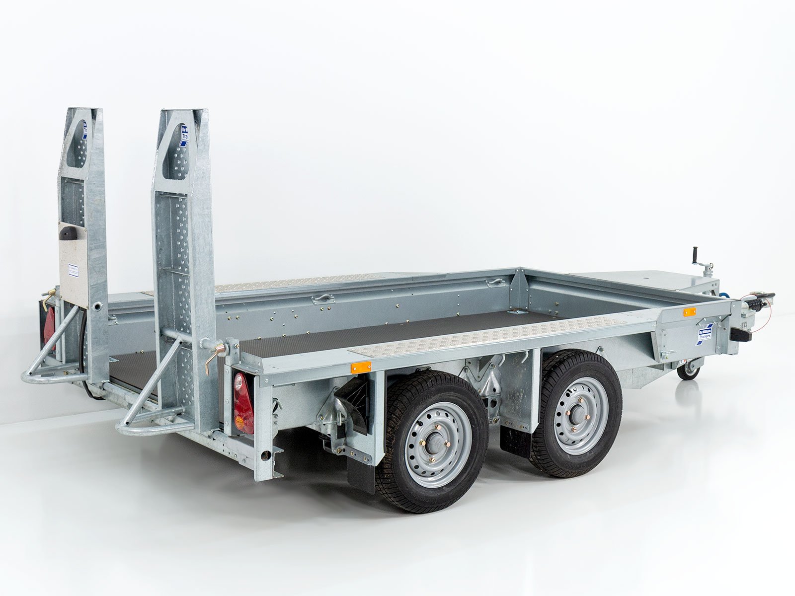 O reboque para máquinas de construção Ifor Williams GX105 oferece uma estrutura de aço robusta, paredes laterais de aço galvanizado e placas xadrez de alumínio transitáveis nas partes laterais. Com rampas individuais móveis e apoio para caçamba de escavadeira, o reboque é ideal para o transporte de máquinas de construção. Ele impressiona por sua alta flexibilidade e recursos fáceis de usar.