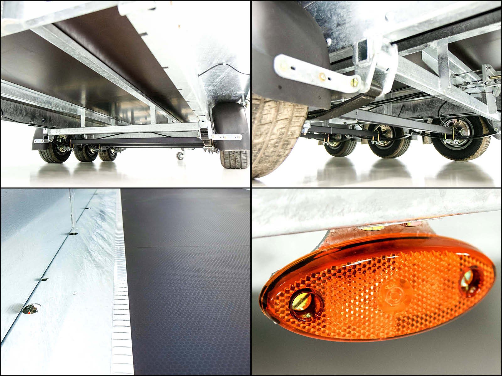 O carregador alto Ifor Williams tipo TB 5521 oferece uma área de carga particularmente grande de 550 cm de comprimento e uma carga útil de 2.400 kg. Com a sua área de carga basculante e a rampa de grade estável e contínua, este reboque é ideal para o transporte de mercadorias pesadas ou de grande volume. O reboque está equipado com um chassis super plano que oferece um ângulo de aproximação particularmente baixo, bem como um guincho deslizante que simplifica ainda mais o carregamento.