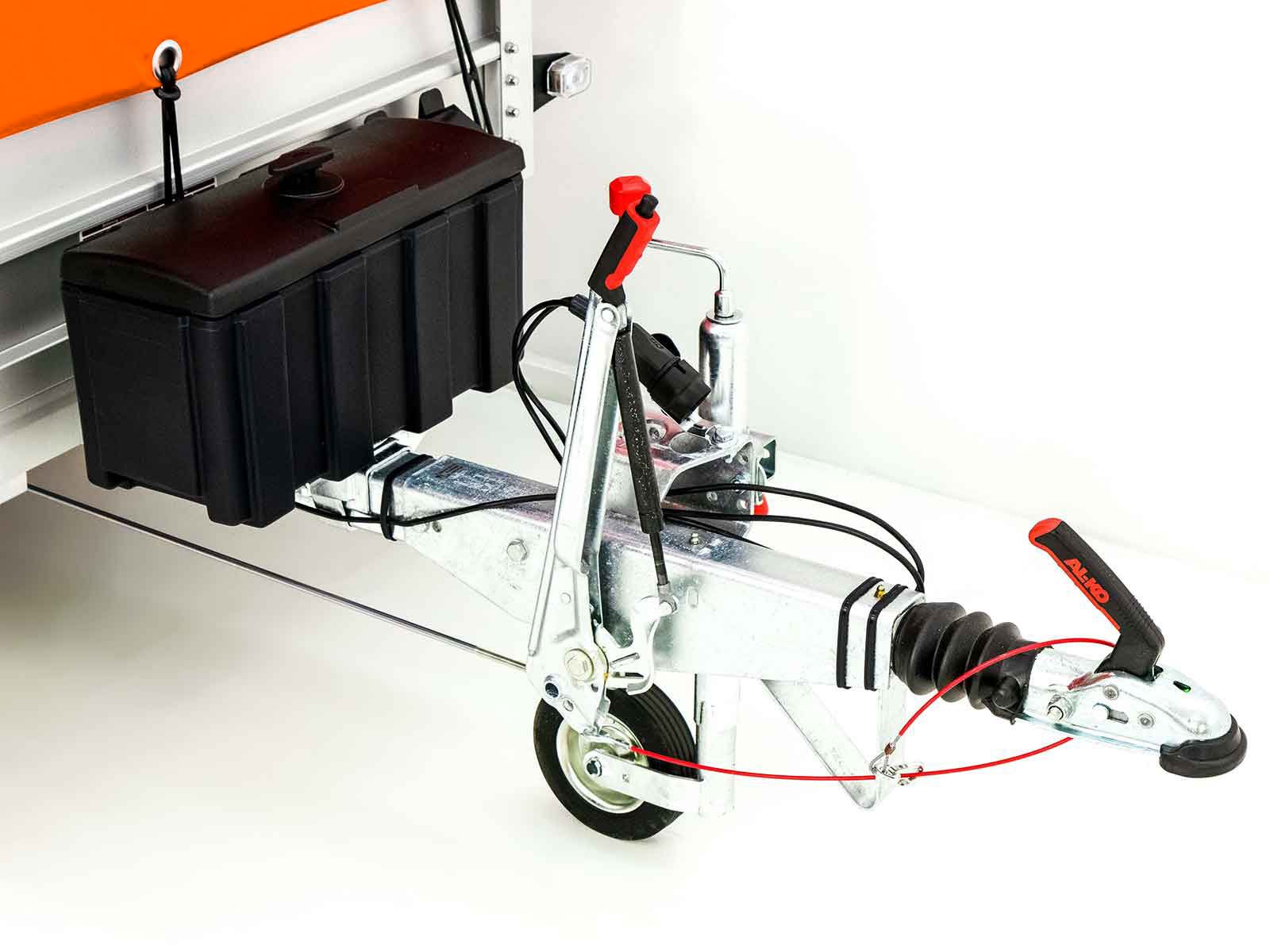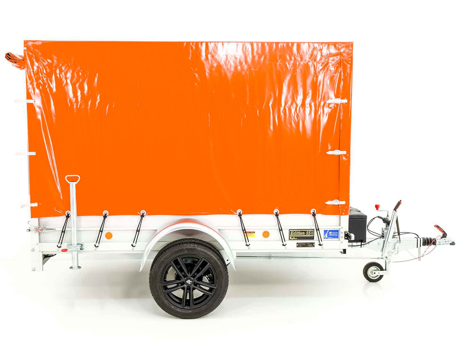 O reboque Koch ‘Edition 35’ é um reboque de lona versátil com uma lona alta e robusta de 160 cm. Com a sua atraente cor laranja e inúmeras funções práticas, este reboque é ideal para o transporte seguro de diversos materiais. A ‘Edition 35’ também oferece detalhes exclusivos, como uma caixa de armazenamento com chave e uma grande variedade de cores de lona.