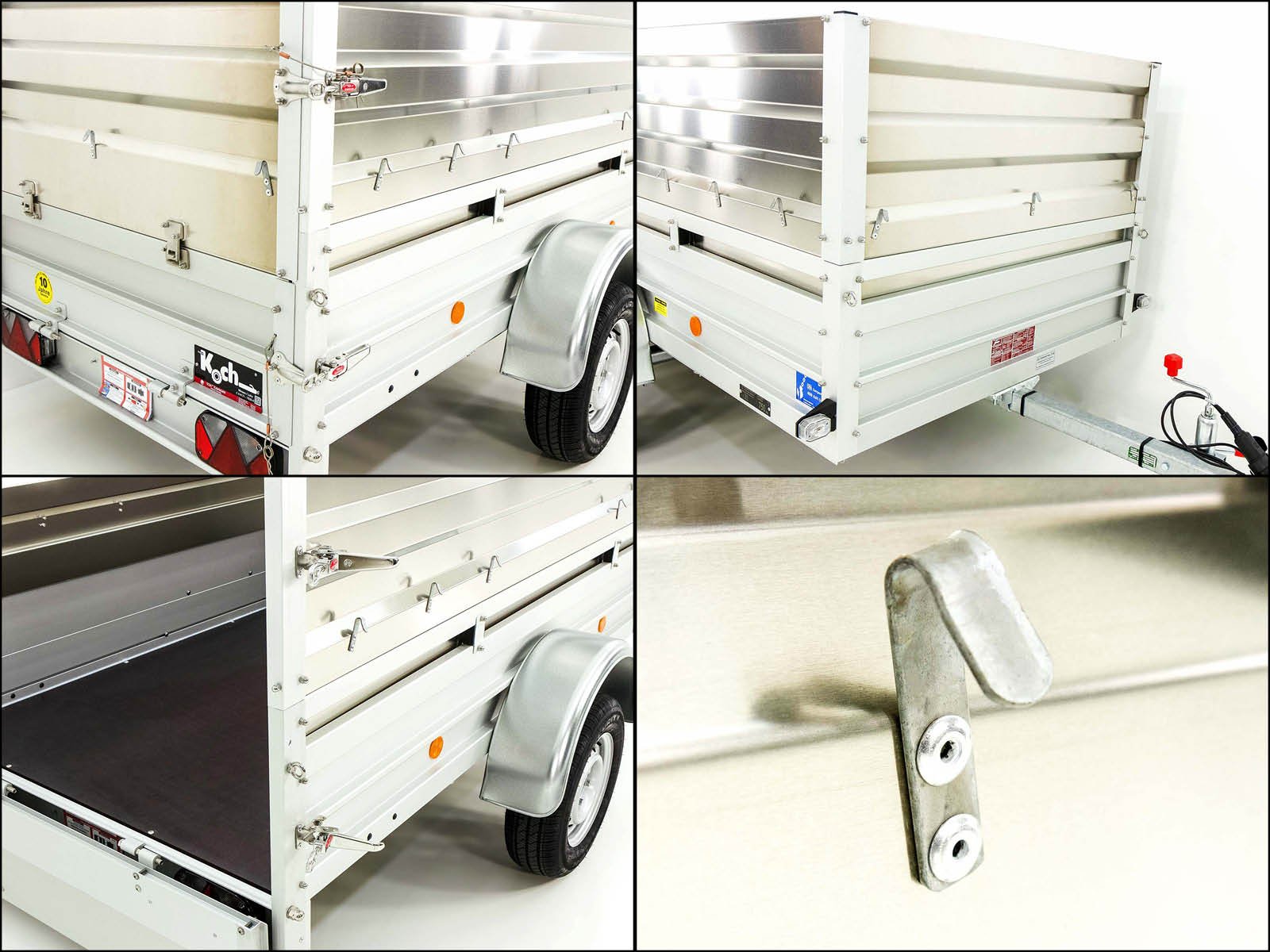 O reboque Koch tipo U4 com fixação e lona Hobby oferece uma expansão prática com uma fixação de parede de tábua (50 cm), que aumenta a altura de carga para 95 cm. Ideal para transportar mercadorias de diferentes alturas. Outras características marcantes deste modelo incluem: