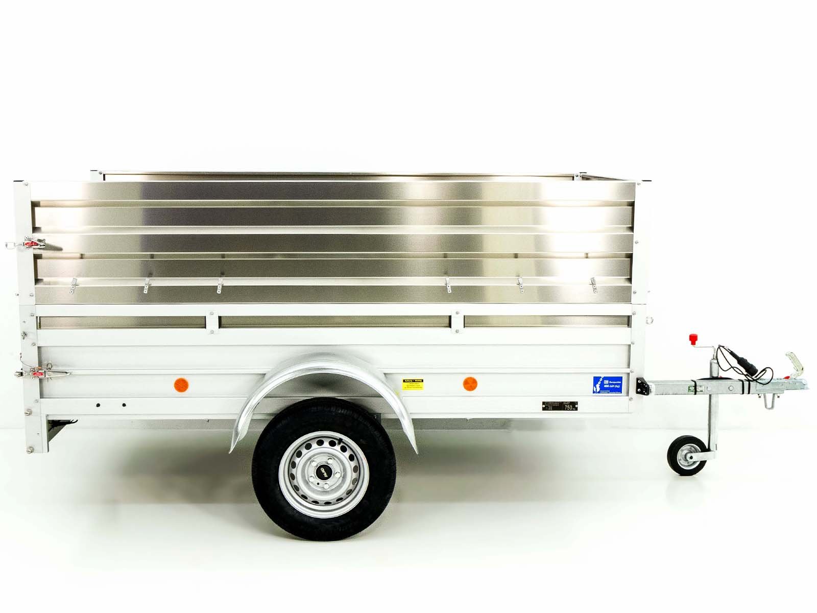 Este trailer também está equipado com um eixo galvanizado por imersão a quente e um sistema de eixo com mola de borracha livre de manutenção, o que o torna particularmente durável e fácil de cuidar. O reboque sem freio é particularmente adequado para o transporte de cargas mais leves.