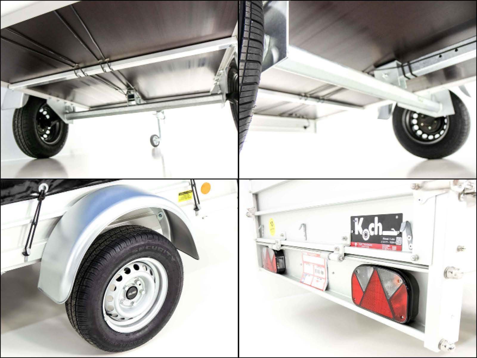 Tal como acontece com os outros modelos, este reboque tem um eixo galvanizado a quente e um sistema de eixo livre de manutenção. O trailer também é equipado com eletricidade de 12 volts, que garante uma iluminação segura. O reboque está sem freio e é adequado para tarefas de transporte mais leves.
