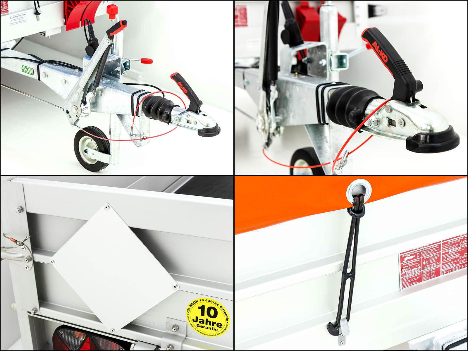 O reboque Koch tipo 7.13 com lona alta (160 cm) é um reboque robusto e versátil para uso comercial ou privado. Com um volume de carga de 150 x 300 cm, este reboque oferece espaço suficiente para o transporte de mercadorias maiores e mais pesadas. A lona pode ser aberta na frente e atrás e garante fácil carregamento. Este trailer também vem com garantia de 10 anos e impressiona pela alta qualidade “Made in Germany”.