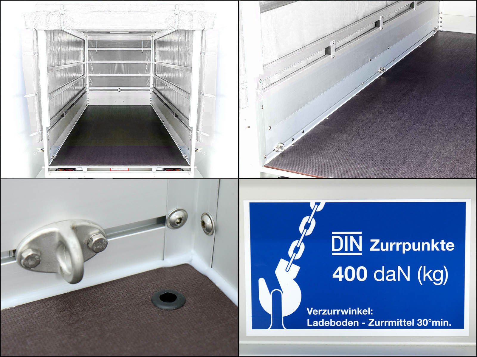 - Galeria de amarração de três lados para fixação flexível da carga