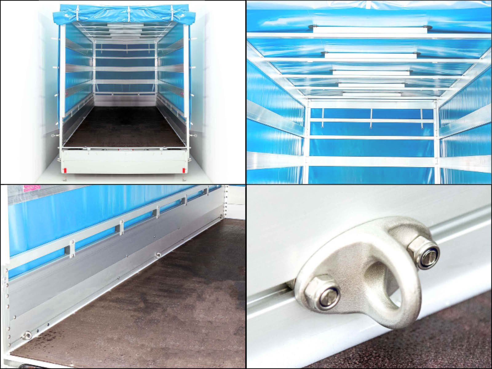- Galeria de amarração de três lados para fixação flexível da carga