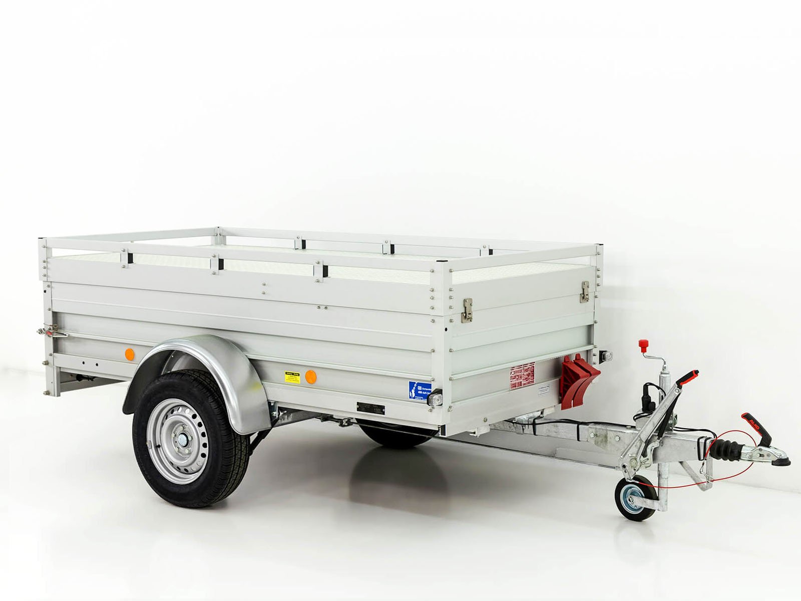 O reboque com tampa Koch tipo B1000 com espaço de carga de 105 x 205 x 50 cm é um reboque leve de alumínio com peso total permitido de 1000 kg e carga útil de 840 kg. Fabricado na Alemanha e com garantia de 10 anos.
