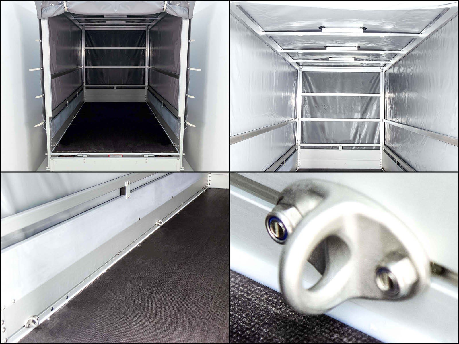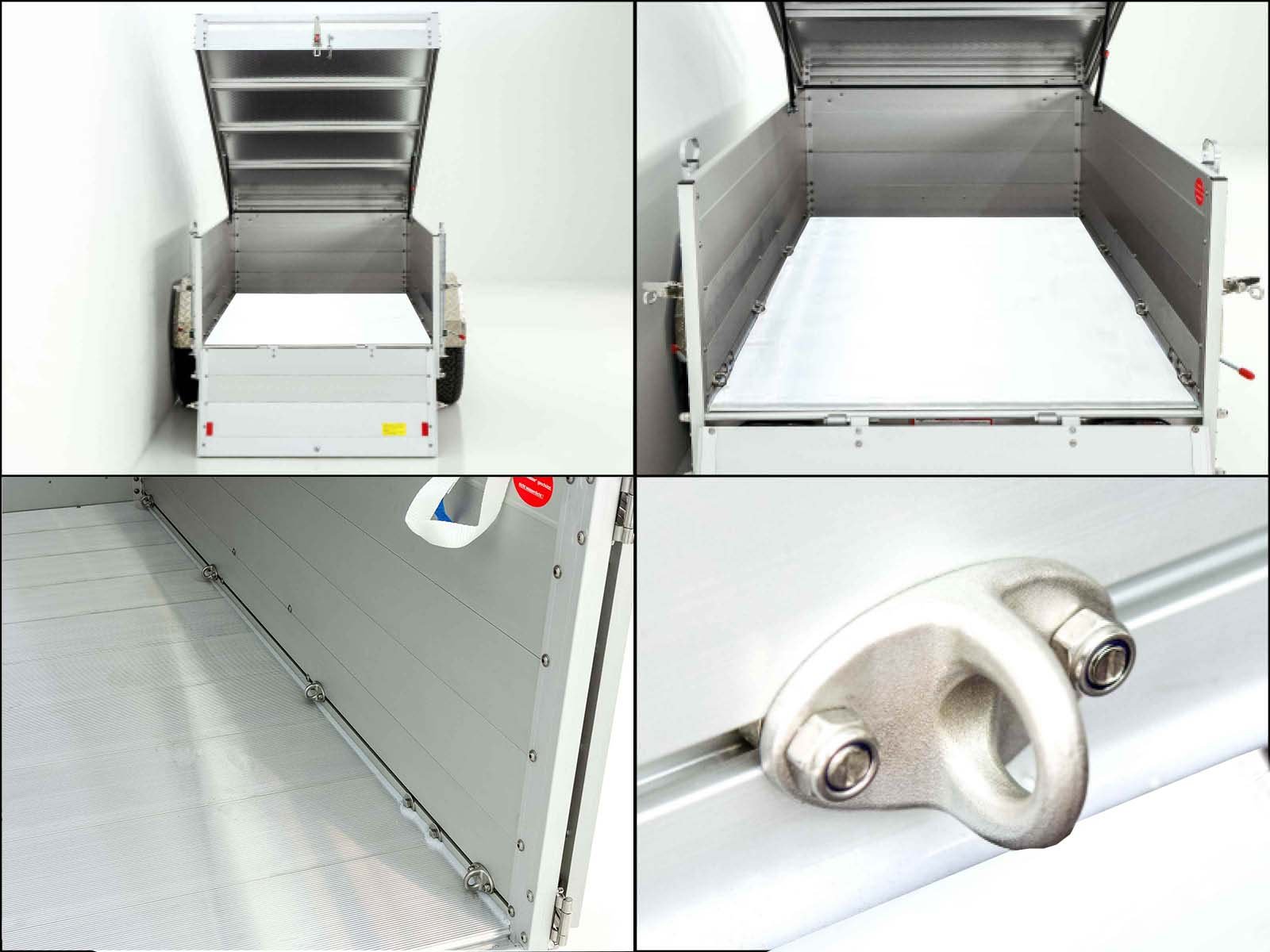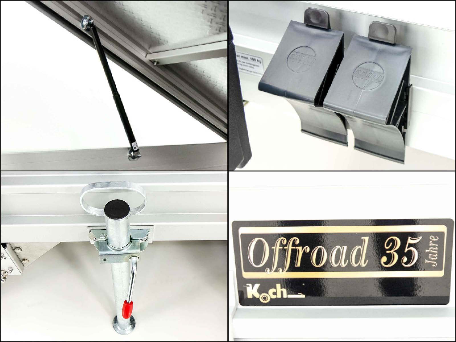 O reboque com tampa Koch ‘CROSSLINE’ tipo 4.13 é um reboque leve de alumínio com peso total permitido de 1.300 kg e carga útil de 1.060 kg. Este trailer oferece muitos detalhes de alta qualidade, incluindo piso de alumínio e garantia de 10 anos. É perfeito para uso versátil e garante uma longa vida útil.
