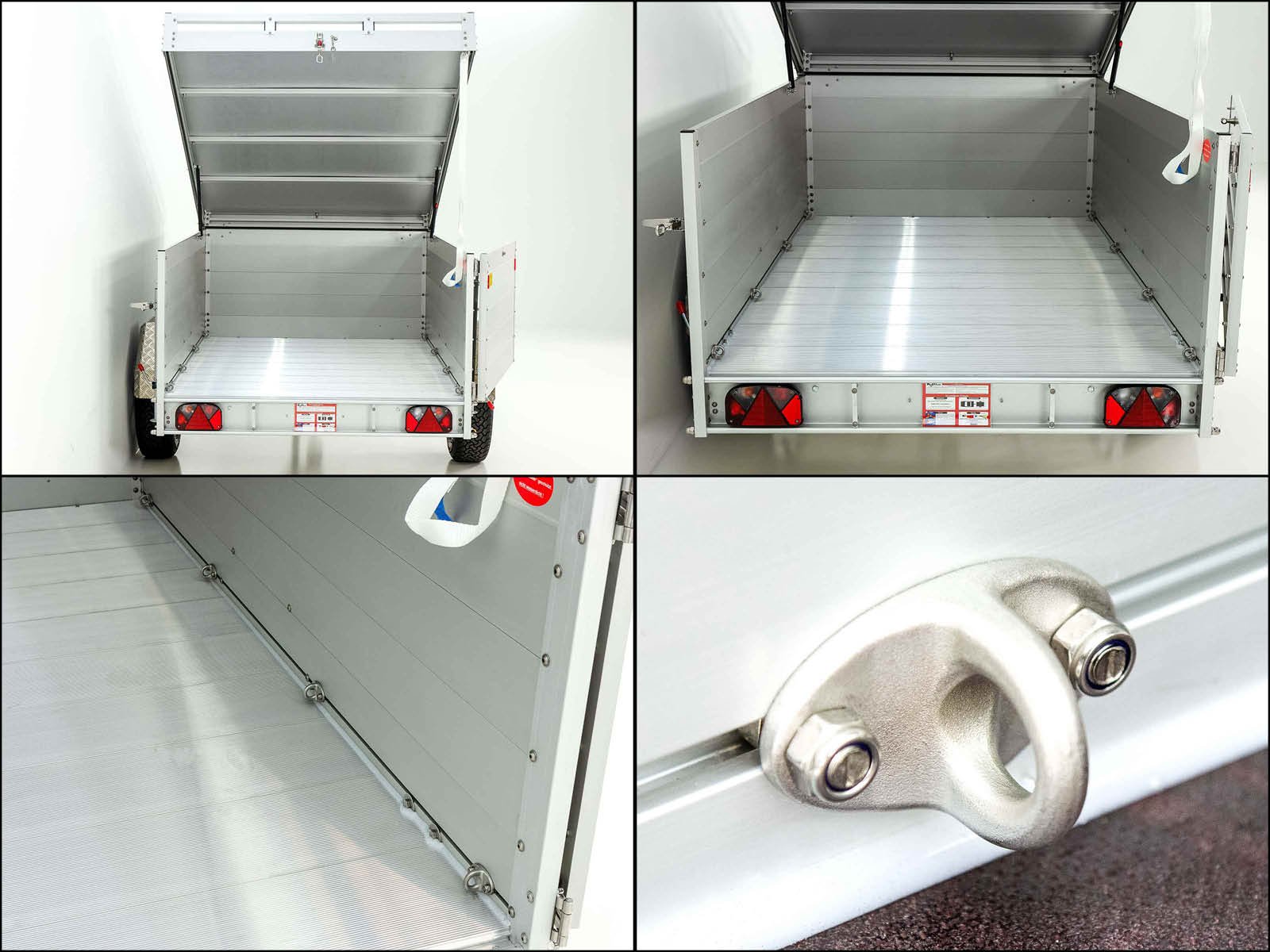O reboque com tampa Koch ‘CROSSLINE’ tipo 6.13 é um reboque de alumínio de alta qualidade com peso total permitido de 1.300 kg e carga útil de 1.040 kg. Fabricado pela Koch Trailerwerke, um renomado fabricante alemão com mais de 35 anos de experiência. Este trailer impressiona pelo seu acabamento de primeira classe e amplos recursos, incluindo uma garantia de 10 anos.