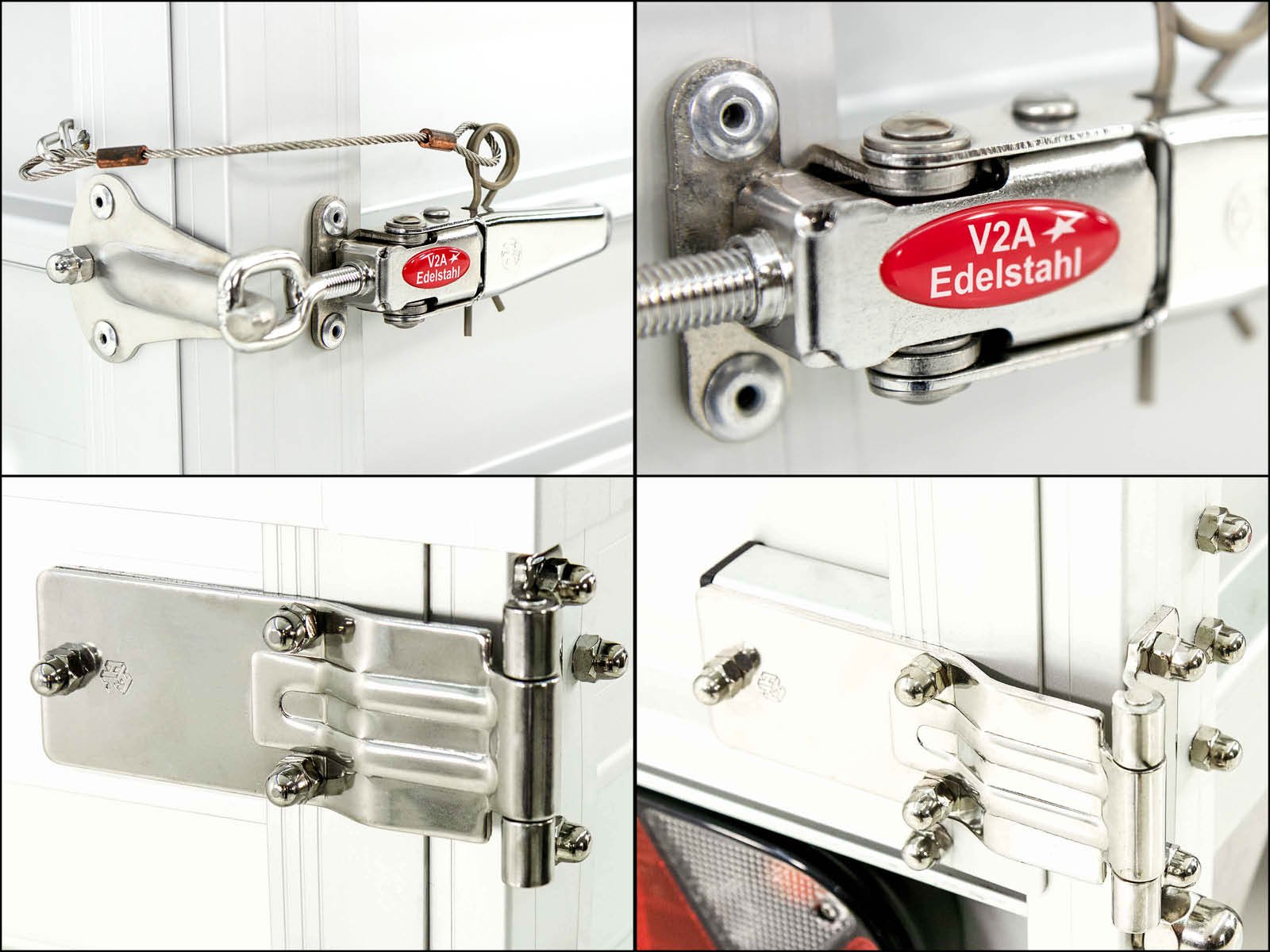 - Travas da porta traseira muito estáveis feitas de aço inoxidável V2A
