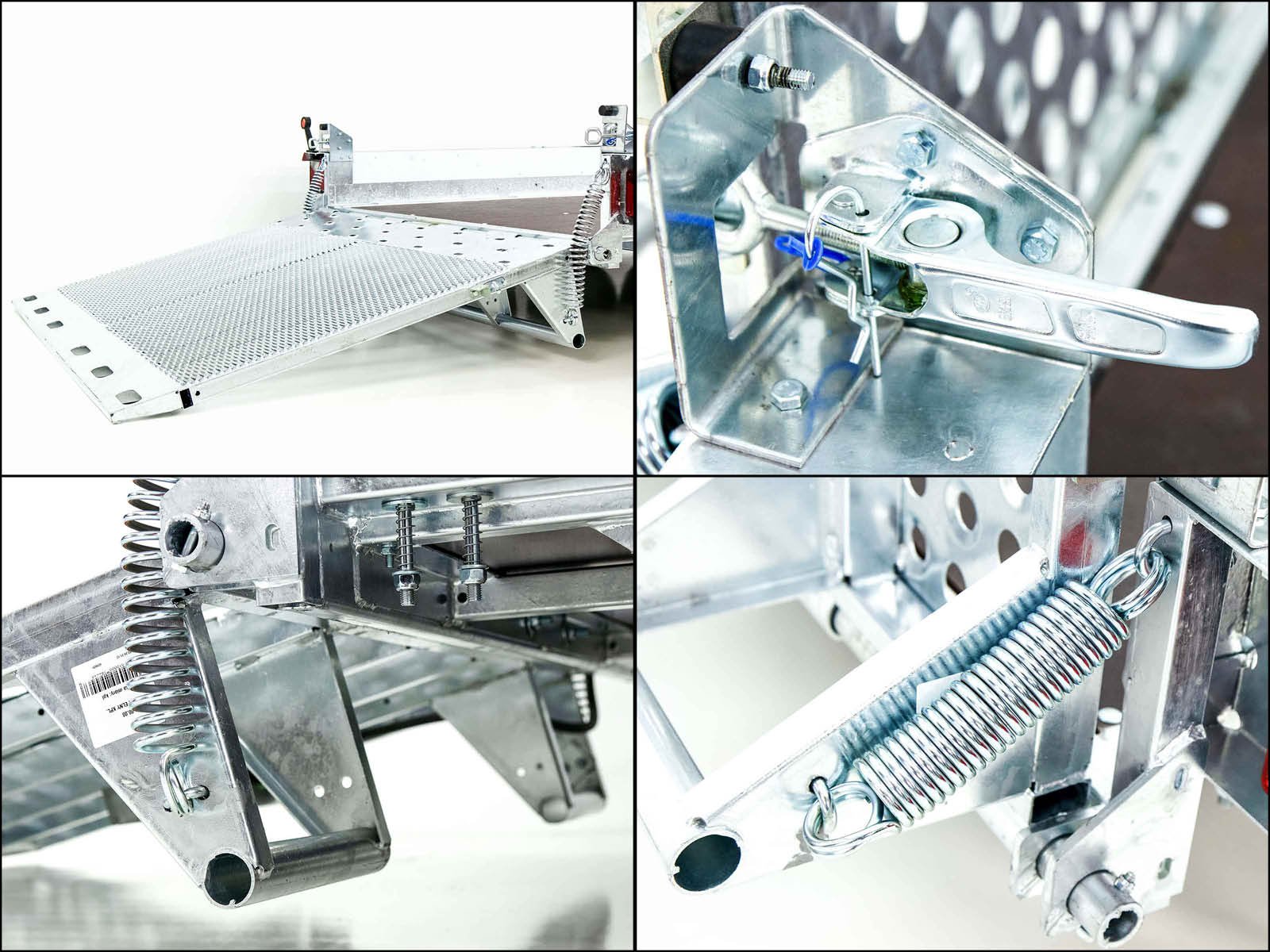 - Chassis: Eixo com mola de borracha, barra de tração em V com acoplamento esférico, roda de suporte automática para serviço pesado