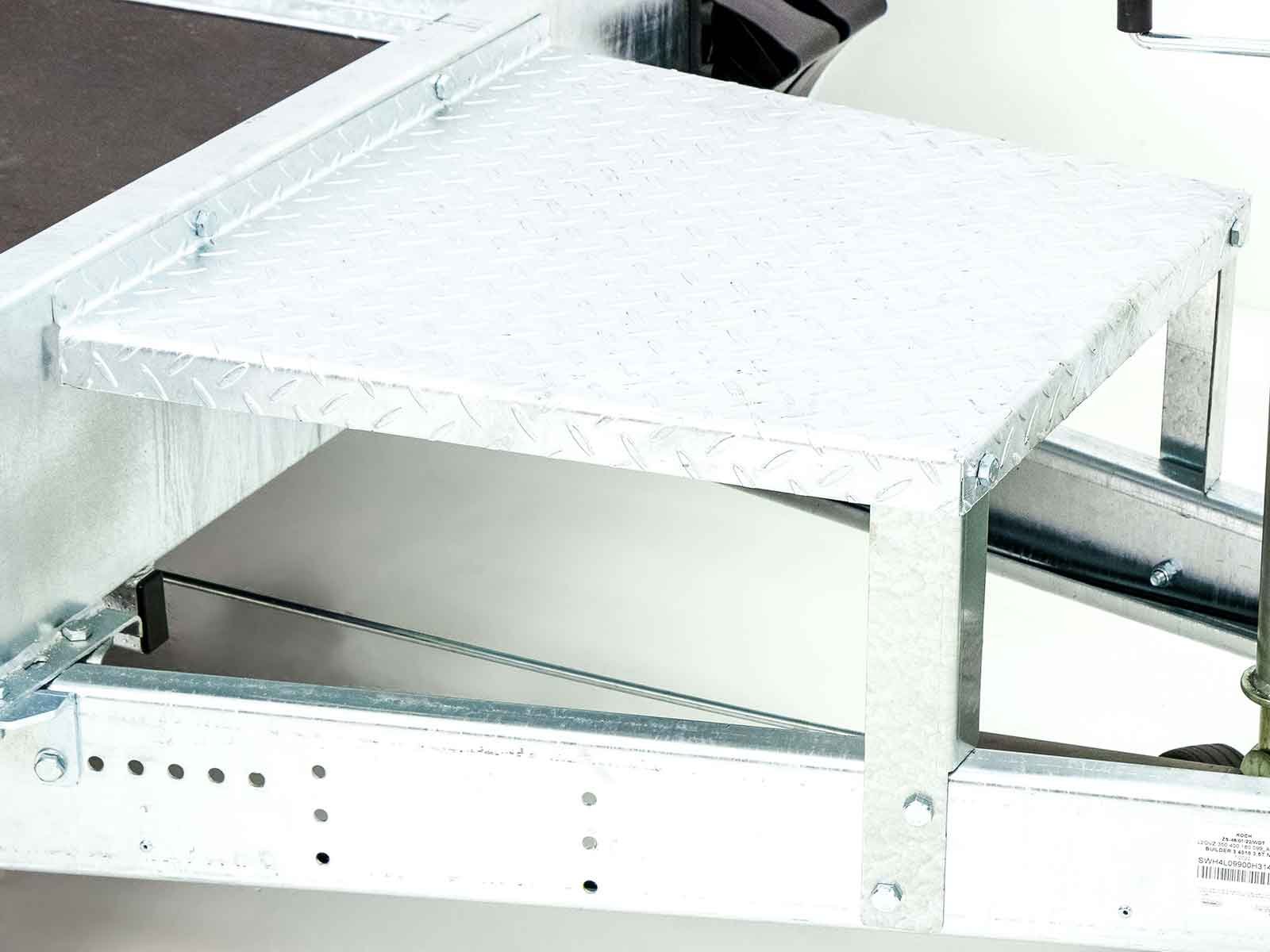 O trailer de construção Temared Builder é uma solução robusta para transporte de máquinas pesadas. A estrutura de aço soldada e as laterais de aço galvanizado garantem longevidade. Os painéis laterais transitáveis e a rampa de acesso com suporte de rampa permitem fácil manuseio durante o carregamento. Com 8 olhais de fixação no piso de carga, é garantida uma fixação segura da carga.