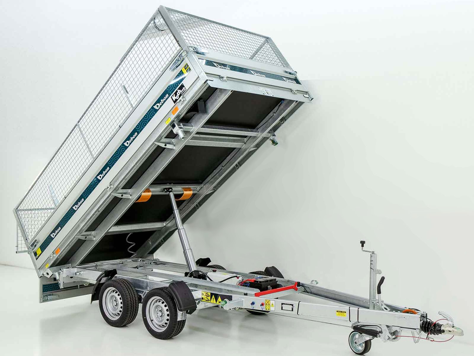 Um robusto basculante de três vias da Unsinn com uma bomba elétrica hidráulica e uma bomba de emergência para operação de emergência. Ideal para transportes exigentes.