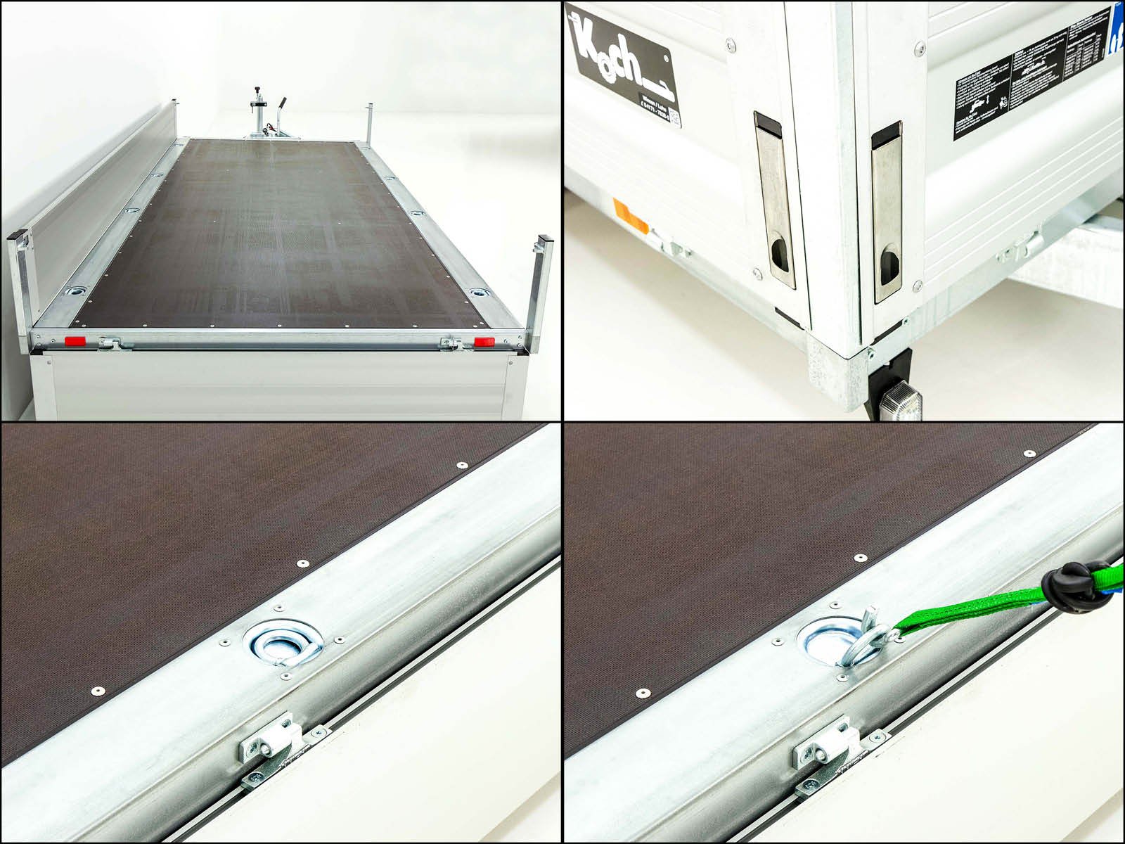 O reboque UHL de alta carga Unsinn com pneus de 10 polegadas tem especificações quase idênticas à versão de 14 polegadas, mas oferece pneus um pouco menores, o que pode afetar a estabilidade de direção e o desgaste dos pneus. Também aqui as calhas de amarração oferecem uma capacidade de carga de 600 daN e o reboque está equipado com uma roda jockey automática e um sistema de reversão automática. As paredes laterais de alumínio removíveis e o painel multiplex de madeira garantem um carregamento flexível e seguro.