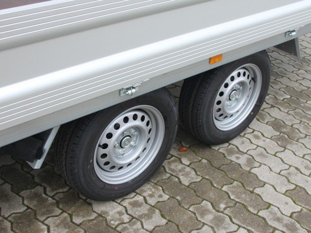 O reboque de alta carga UHL Unsinn com pneus de 14 polegadas oferece uma carga útil elevada de 2.060 kg com um peso total permitido de 2.600 kg. O reboque é particularmente robusto e durável graças à placa de base de madeira multiplex e às paredes laterais de alumínio removíveis. As calhas de amarração (com capacidade de carga de até 600 daN) oferecem segurança ideal para sua carga. Com uma roda de suporte automática e um equipamento de reversão automática, o reboque pode ser manuseado confortavelmente.