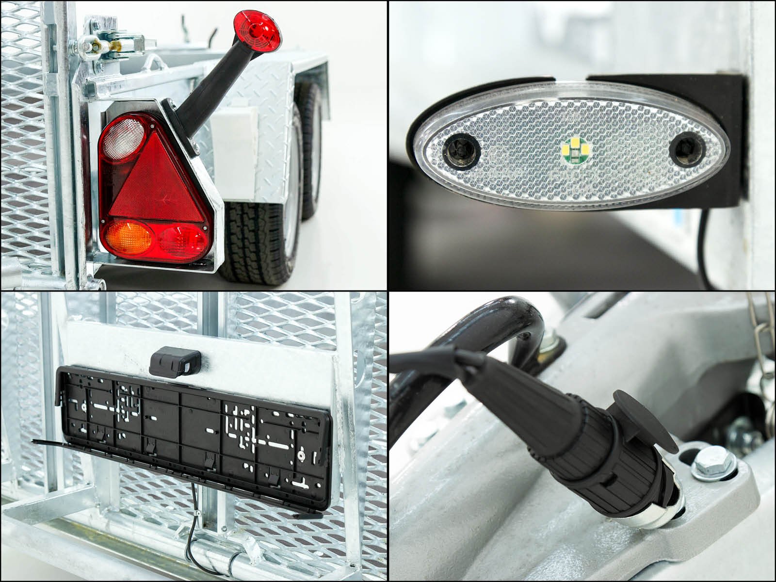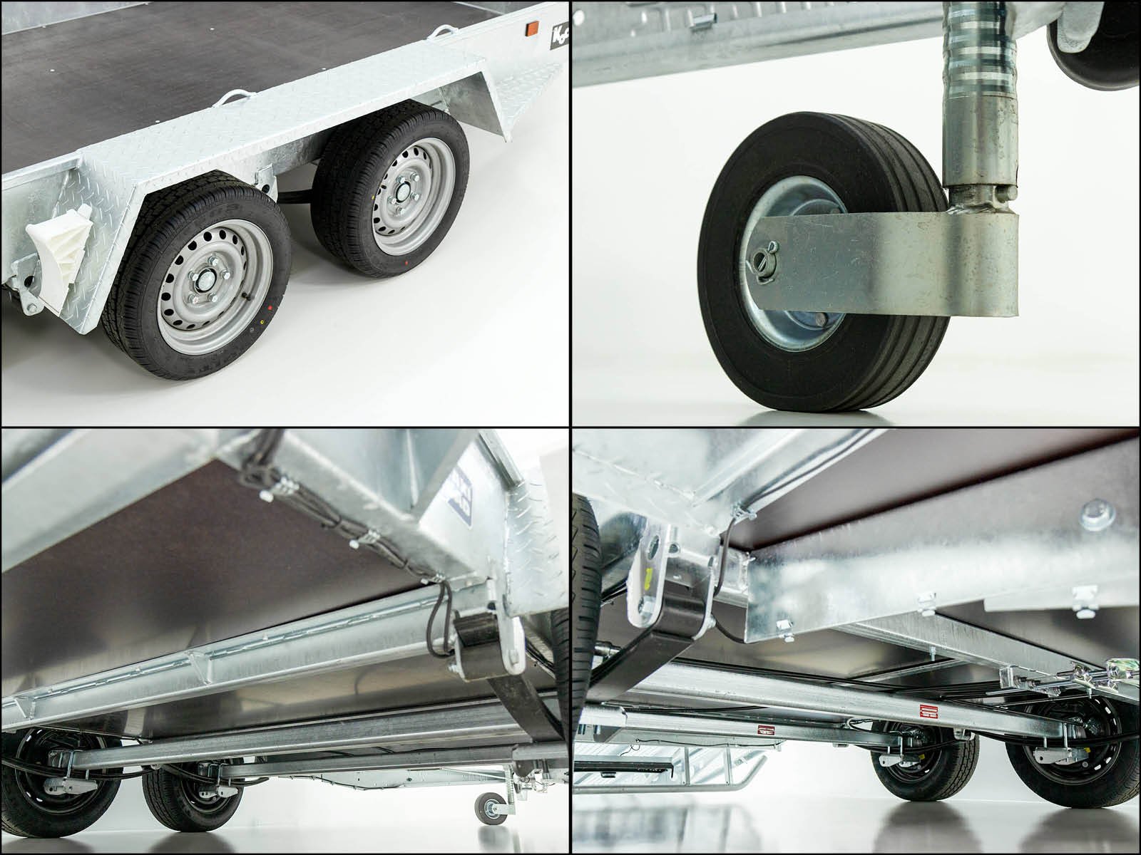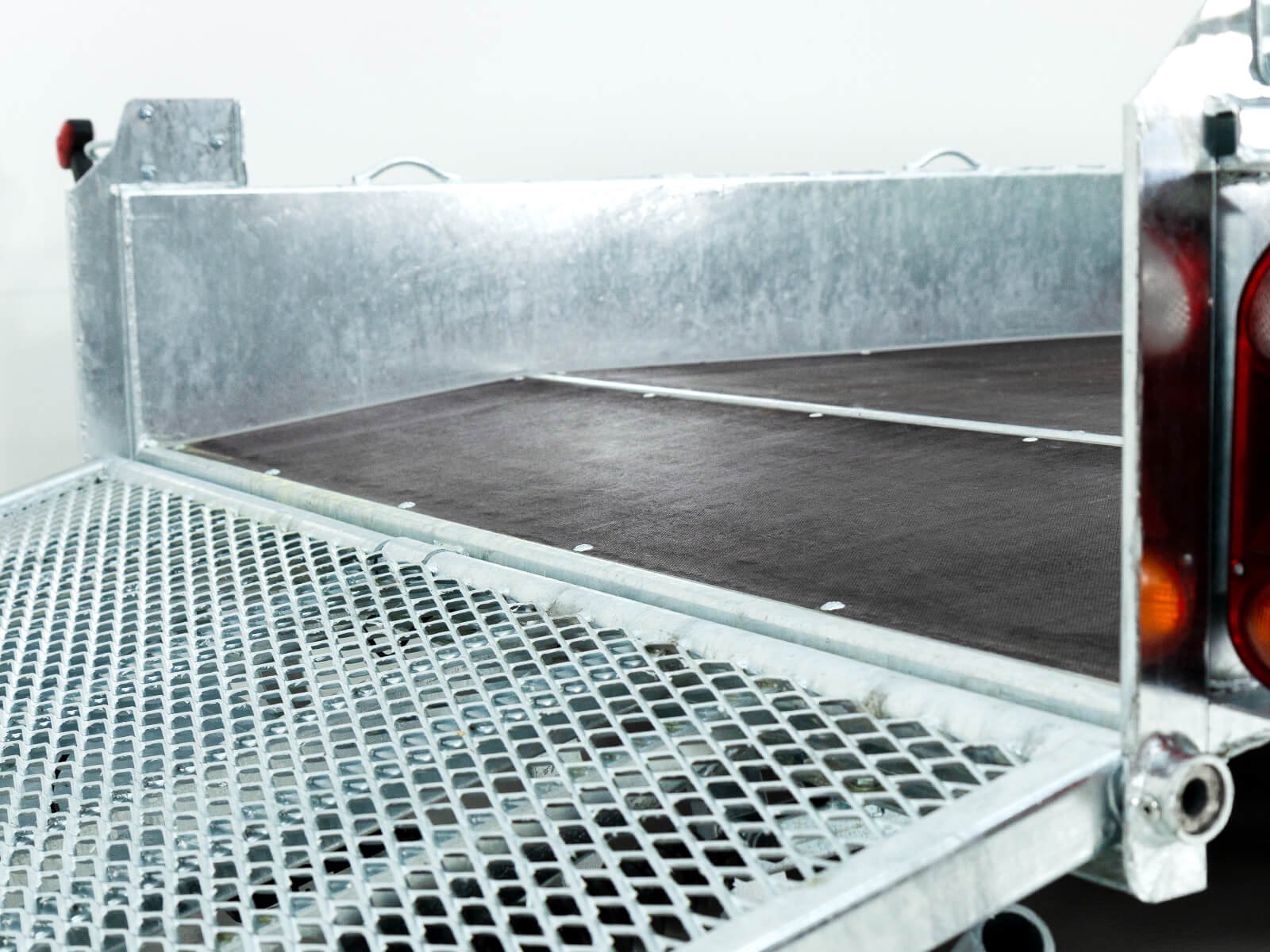 O ‘Reboque de máquinas de construção Variant Maxi Load 161×305 3.5t’ com rampa contínua é ideal para o transporte de máquinas e veículos de construção pesada. A rampa é particularmente estável e facilita a subida. A generosa carga útil de 2.869 kg garante alta resiliência.