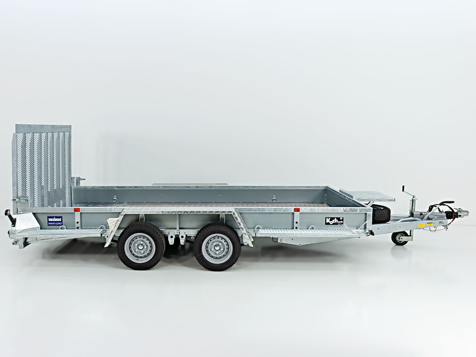 O reboque para máquinas de construção Variant Maxi Load com rampa contínua e piso de alumínio oferece uma solução particularmente robusta e durável para o transporte de máquinas pesadas. Com base de alumínio de alta qualidade para menor peso e maior durabilidade.