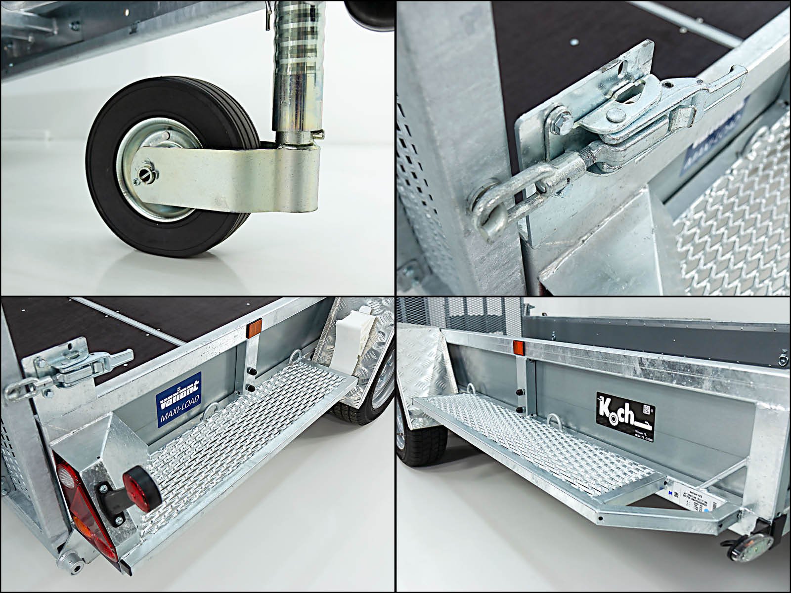 O reboque para máquinas de construção Variant Maxi Load 180×400 3,5t com rampa contínua e cauda de castor oferece uma solução sólida para o transporte de máquinas de construção e equipamentos pesados. A estrutura de aço galvanizado e o equipamento robusto garantem uma longa vida útil.