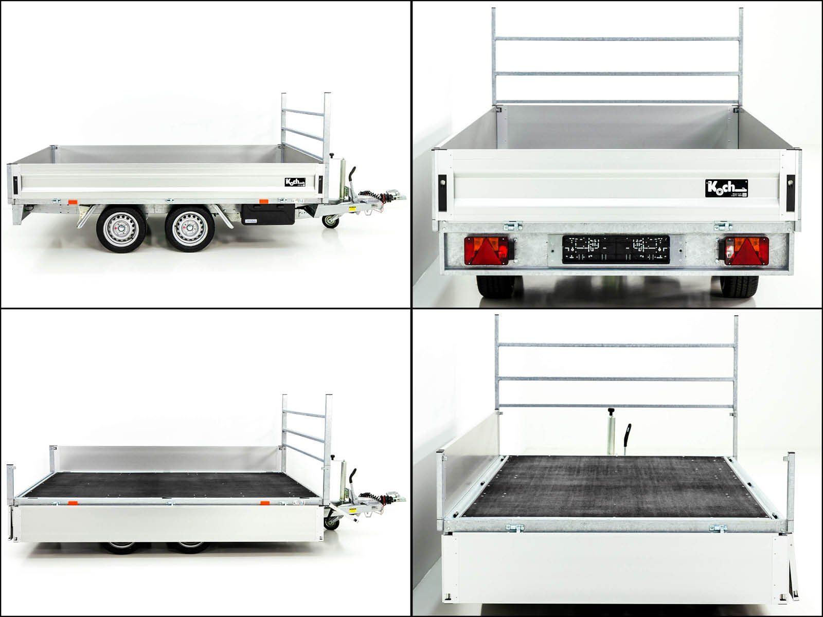 O reboque de carga alta variante P3 2018 Comfort é um reboque versátil com uma área de carga de 175×315 cm e um peso total permitido de 2 toneladas. Com uma carga útil de aproximadamente 1523 kg, oferece capacidade suficiente para transportar cargas médias. O reboque está equipado com paredes laterais de alumínio (350 mm de altura), dobráveis e removíveis, além de um túnel de rampa para facilitar o uso das rampas. A estrutura H e a caixa de armazenamento proporcionam conforto e funcionalidade adicionais. As fechaduras embutidas nas paredes laterais revestidas de borracha e os 6 suportes de amarração (500 daN) no perfil da estrutura do piso garantem uma fixação segura da carga. O reboque oferece um alto nível de estabilidade graças ao eixo de suspensão de borracha e possui um sistema de reversão automática e uma roda de apoio automática. Uma aprovação de 100 km/h está disponível por um custo adicional.