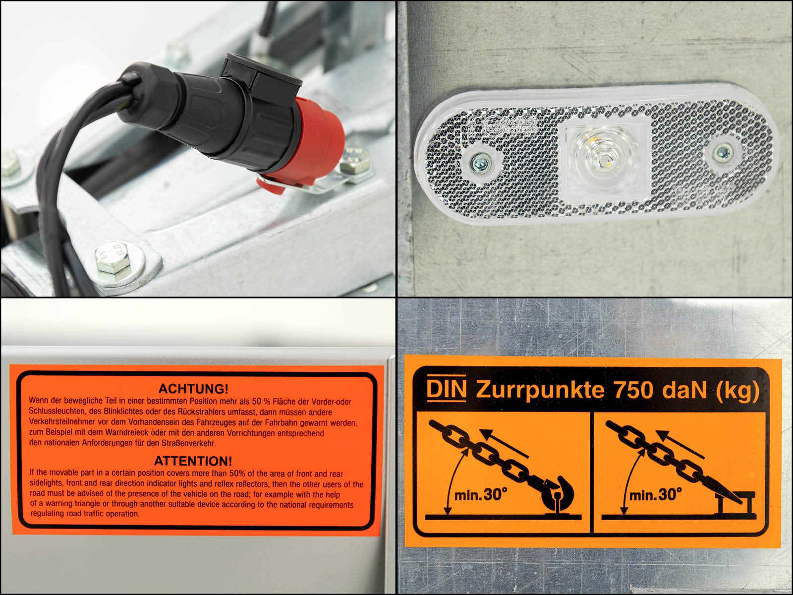 | Colocar os olhos | 4 suportes de amarração, emborrachados, 500 daN |